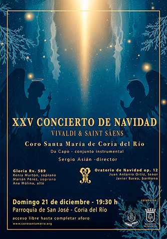 El Coro Santa María de Coria del Río celebra en 2025 la vigésimo quinta edición de sus Conciertos de Navidad, una cita ya tradicional en la vida cultural y espiritual del municipio.